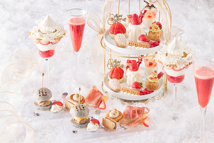 白と赤を基調とした苺を贅沢に使用したクリスマスアフタヌーンティー